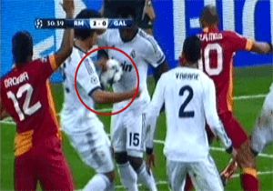 | Bernabeu'da Real Madrid karşısında iyi bir mücadele veren G.Saraylı futbolcular 27. dakikada yaşanan pozisyon sonrası adeta çıldırdı