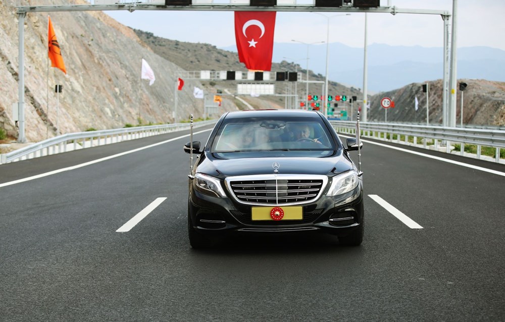 Törenin ardından Cumhurbaşkanı Erdoğan otoyolda makam aracını kullandı.