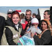 | Tv reklamlarının Ayşe Teyzesi, Güneydoğu'da üç günden beri sel felaketinde mağdur olan vatandaşlara kadın pedi, çocuk bezi deterjan dağıttılar. |