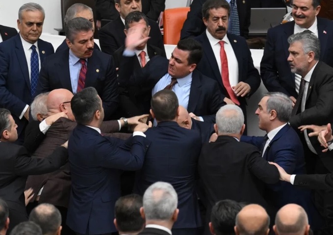 ANKA'nın aktardığına göre; TBMM Genel Kurulu'nda Adalet Bakanı Akın Gürlek'in yemin töreni sırasında çıkan kavga sebebiyle, Akın Gürlek TBMM'den AKP'li vekiller eşliğinde çıktı.