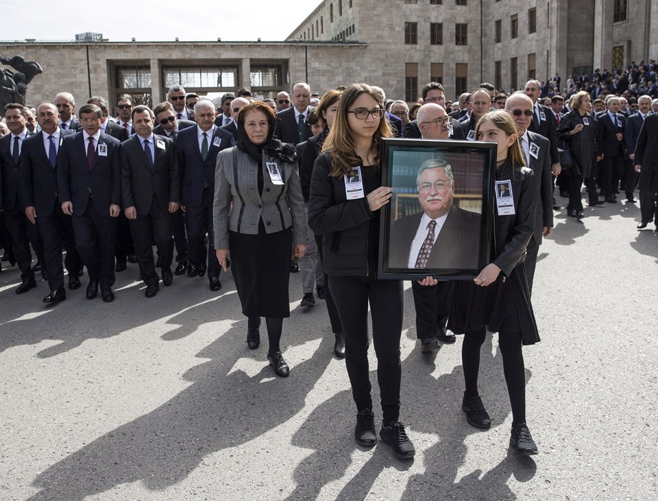 Törende, Güzel için saygı duruşunda bulunuldu ve dua edildi. Torunları, Hasan Celal Güzel'in fotoğrafını taşıdı.
