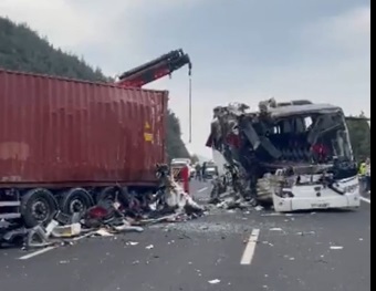 | Osmaniye'nin Bahçe ilçesinde yolcu otobüsünün, lastiği patladığı için sağ şeritte park halinde olan TIR'a arkadan çarptığı kazada 7 kişi öldü, 11 kişi yaralandı. |