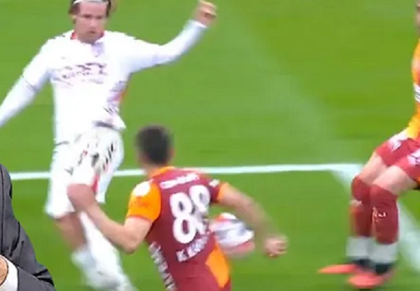 Samsunspor'un maçın son anlarında beklediği penaltıya ilişkin konuşan Dilmen, "Kazımcan’ın eli açık olunca top eline çarpıyor. IFAB kurallarına göre buna penaltı diyorlar. Ancak o anda orta hakem ve VAR’ın aklına 'Geçen hafta Fenerbahçe–Galatasaray maçının ardından bir sürü olay oldu, taraftar grupları çok ağır şeyler yaptılar; yetmedi, Galatasaray yönetimi baskı yaptı' düşüncesi geldi. Zaten dengeleri birkaç yıldır bozuk olan hakemlerde, bu bozulmuş kafalarda da kurallar işlemiyor ve sonuçta haklının değil, güçlünün yanında olmayı tercih ediyorlar." dedi.