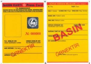 Basın mensuplarının kullandıkları sarı basın kartları; tertip, dizgi ve baskı bakımından yenileriyle değiştirilecektir.