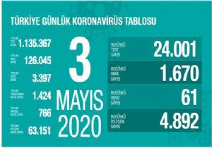 | Türkiye'de koronavirüs kaynaklı can kaybı 3 bin 397'ye yükseldi: Son 24 saatte 61 kişi vefat etti