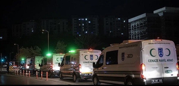 Ankara Adli Tıp Kurumunda işlemlerinin tamamlanmasının ardından şehitlerin naaşları, Mürted Hava Üssü'nde düzenlenecek askeri tören alanına götürülmek üzere yola çıktı.