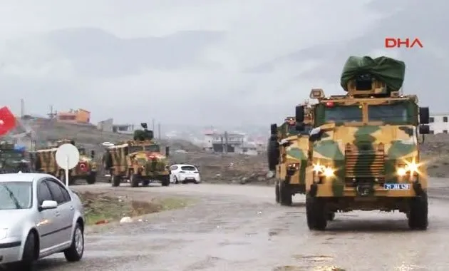 Zeytin Dalı Harekatı'nda son dakika gelişmesi... Gaziantep İslahiye ilçesindeki İçişleri Bakanlığı Müşterek Görev Merkezi'nde toplanan Jandarma ve Polis Özel Harekat timleri Zeytin Dalı Harekatı kapsamında Kilis Gülbaba ve Hatay Hassa sınırından Afrin'e girdi. MESKUN MAHAL OPERASYONLARINA KATILACAKLAR Jandarma ve Polis Özel Harekat timlerinin öncelikle olarak Zeytin Dalı Harekatı kapsamında Afrin bölgesinde teröristlerden temizlenen köylere sızma girişimini önlemek ve meskun mahal operasyonlarına katılacağı belirtildi. JÖH VE PÖH'LERE VATANDAŞTAN YOĞUN İLGİ JÖH ve PÖH'lere İçişleri Bakanlığı Müşterek Görev Merkezi'ne ayrılışı ve Afrin'e girişi sırasında vatandaşlar ellerindeki Türk bayrakları ile sevgi gösterisinde bulundu. Öte yandan harekat kapsamında bölgeye tank sevkiyatı yapıld