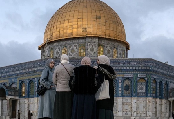 Sabah ezanıyla birlikte kapıları açılan Harem-i Şerif'e yüzlerce Filistinli Müslümanın akın ettiği belirtildi.